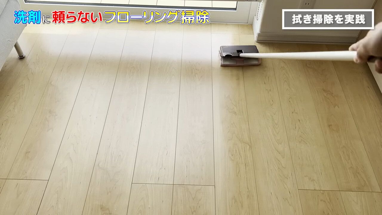 床拭き掃除をする際、洗剤の力に頼るのもひとつの方法ですが、拭いた後の洗剤のこりや、安全性が気になることはありませんか。じつは洗剤の働きを使わなくても、しっかり力をこめて厚めのクロスで拭きあげれば、じゅうぶん汚れを落とせるのだそうです。