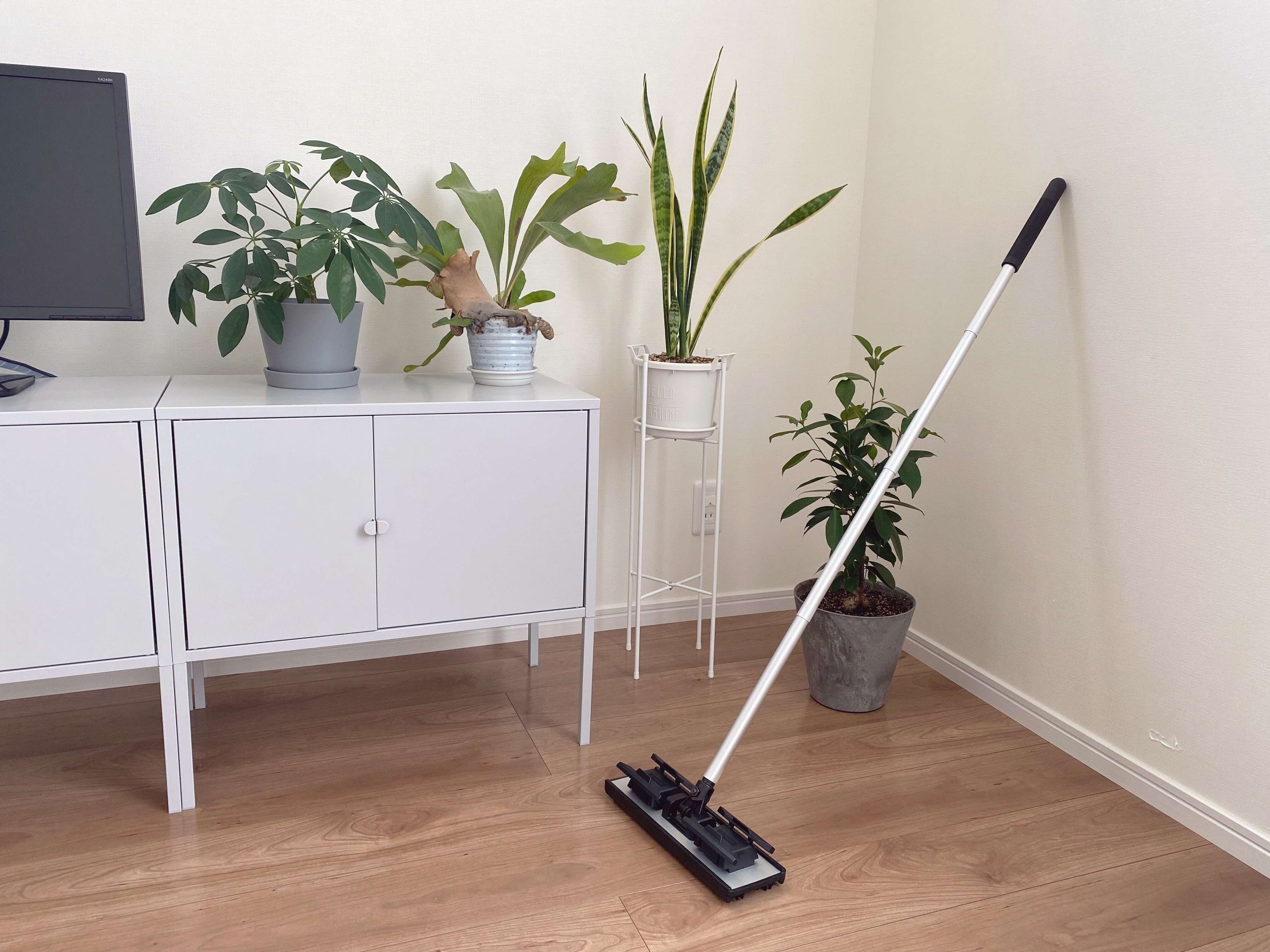 ホーキィのオールラウンドクリーンモップはしっかりしたつくりで、ヘッドがクルクルと無駄に動いてしまうことがなく、窓掃除にも最適です。