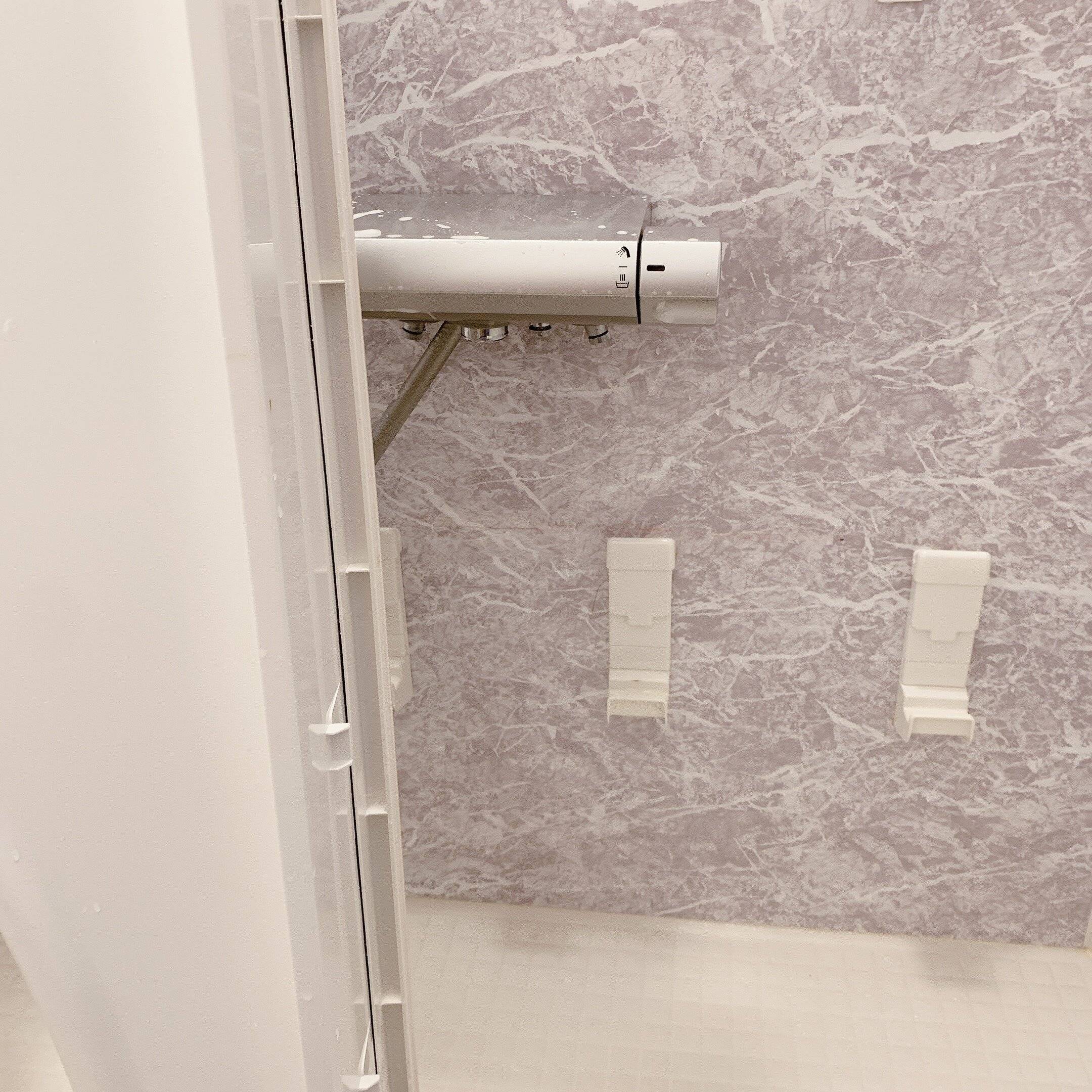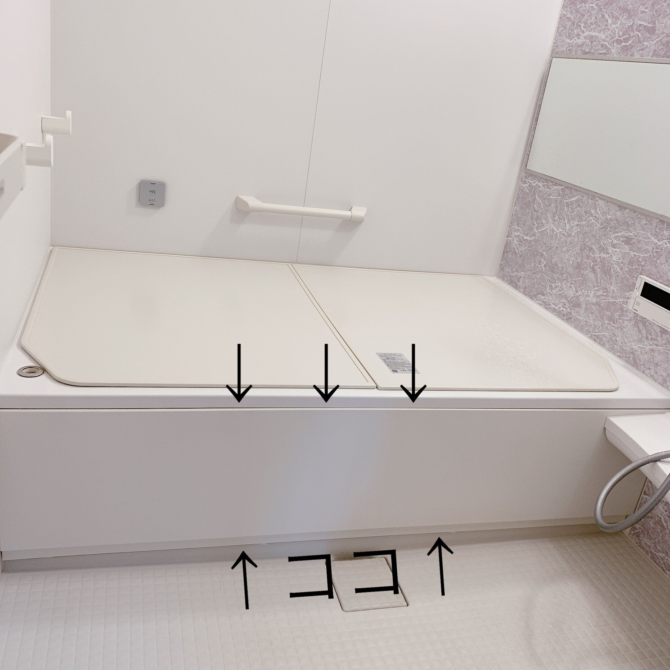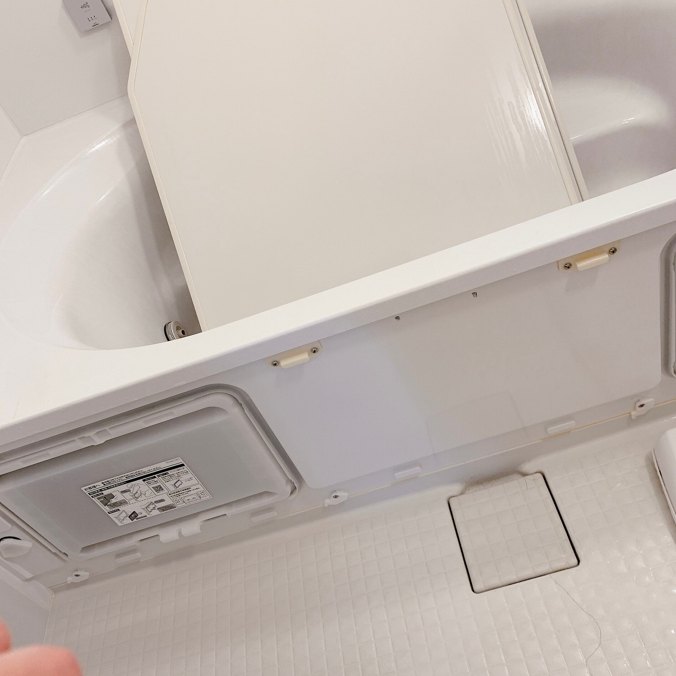 我が家はLIXILのお風呂を使っているので、このエプロンの蓋を外す前に、写真右手側にある棚を外します。