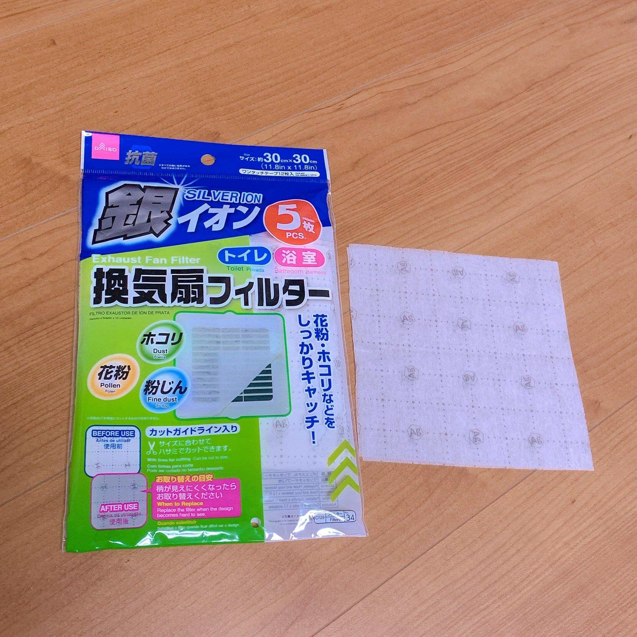 大きめのサイズのものが5枚入っていて、我が家はその1枚を4つに切った大きさが換気扇にピッタリだったので、20枚使えることになります。
