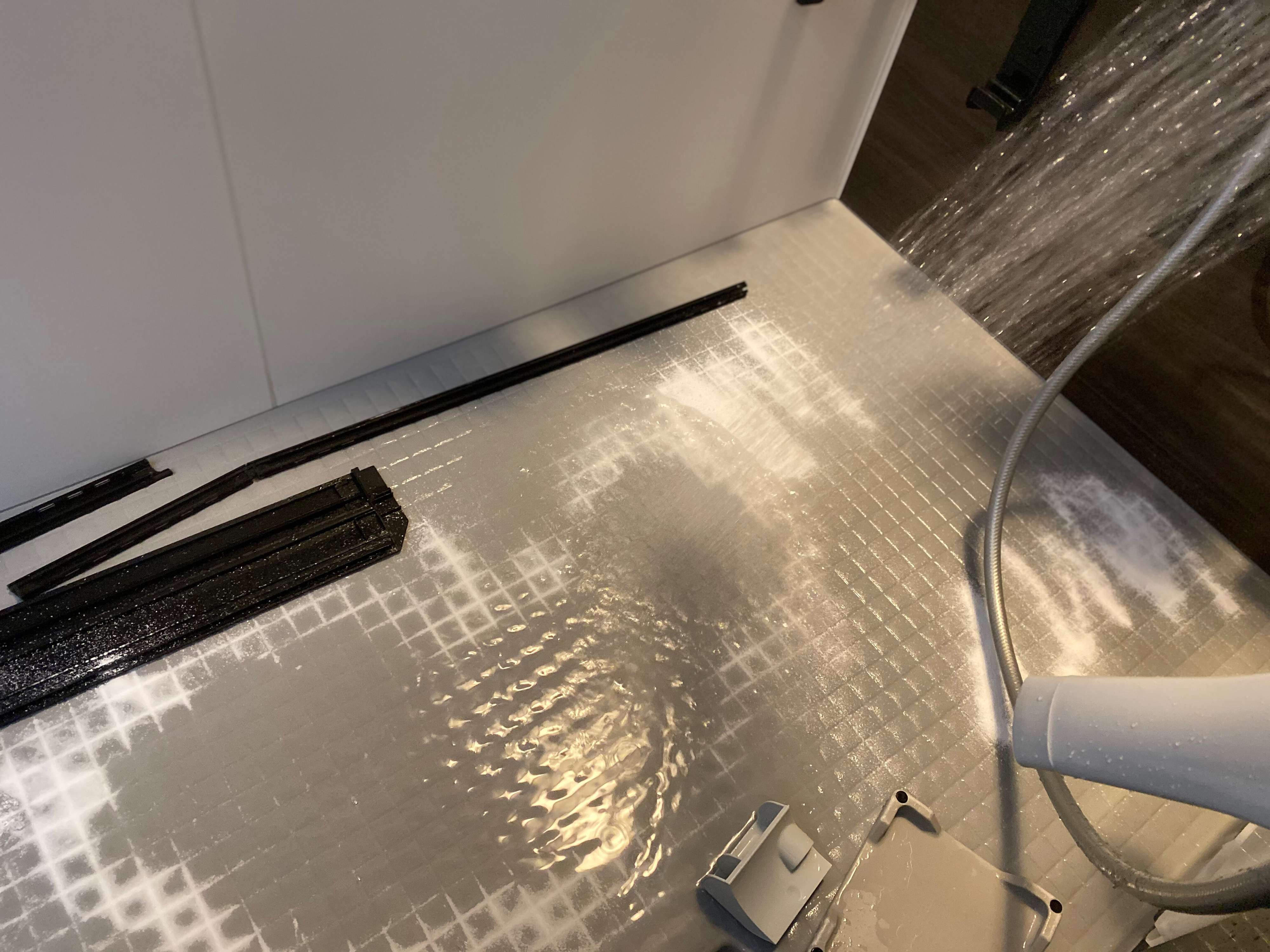 あとはシャワーをかけながら軽く床をブラシで磨き、洗い残しのないようにします。