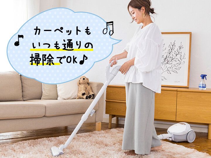 ハウスダストがたまりやすい毛足の長いカーペットも、乾いたら掃除機がけ。