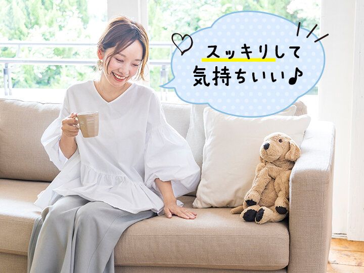 「掃除の前にスプレーするだけで、ソファやカーペットのハウスダスト対策ができてすっきりした気分に! 簡単なのにやりきった感があるから、家事の後のリラックスタイムも普段より心地よく感じますね」(榊山さん)