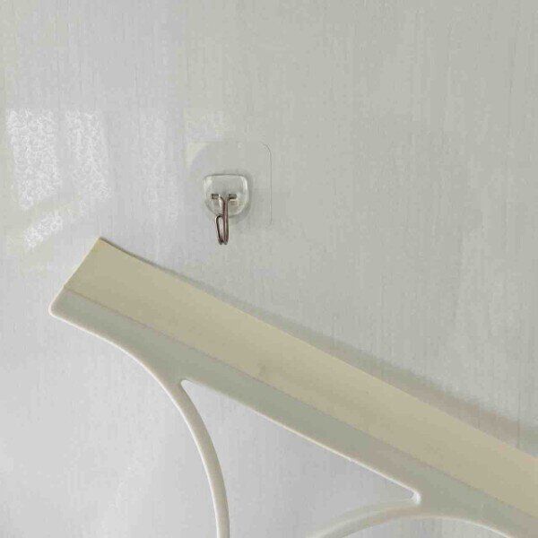 掃除用品など吊るしてしまいたいけど、引っかけられるポールがない!なんてときにもこちらを貼れば吊るしてしまうことができます。フィルムフックなので、何度でも繰り返し使うことができますし、壁を傷めることもないので安心ですね。