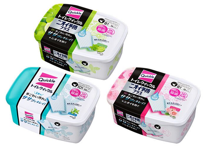 厚手のシートながら、使用後トイレに流せる清潔さと、便器、便座、タンク、床、壁などトイレ内の汚れをしっかりキャッチ。除菌・抗菌※1に加え、ウイルス除去※2も。ニオイプロテクト成分配合で尿がハネても1日防臭する「ニオイ予防プラス」や尿臭・便臭をすっきり消臭する「消臭ストロング」があり、汚れたらすぐに拭き取りたい、子育て中のママたちの支持が高いブランドです。