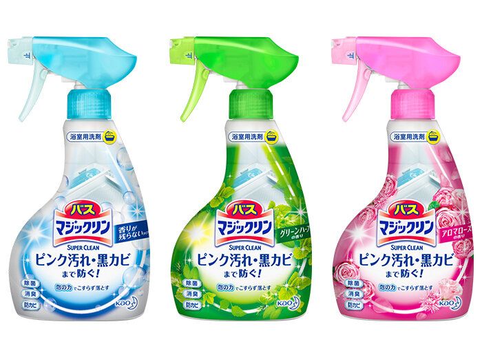 バスマジックリンが発売されて47年。バスタブの材質や生活スタイルの変化に寄り添いながらバスマジックリンは、進化してきました。そんななか、汚れ(石けんカス/皮脂汚れ/湯アカ汚れ)だけではなく菌由来のヌメリ・ピンク汚れ・黒カビも防ぐ効果もあるのが「バスマジックリン SUPER CLEAN」です。さらにウイルス除去※までバリエーション豊かで言うことなし! ママやパパたちのお助け家事グッズとして今も昔も愛されています。