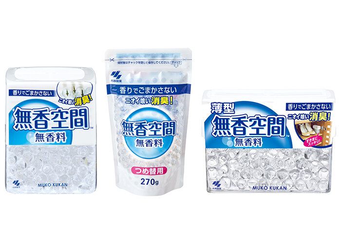無香料派の支持を集めたのがこのシリーズ。リビングはもちろんのこと、トイレ、ペットのニオイ、玄関、キッチンなど用途は幅広く、また、「商品の替え時がわかりやすい!」「ビーズがかわいい!」と、パッケージに魅力を感じている人も多かったです。通常の「無香空間(TM)」ほか、下駄箱や排水口などの狭いスペースに置ける「無香空間 薄型(TM)」も人気の高い商品。どちらも消臭作用をもつアミノ酸系消臭成分を配合した“ニオイ喰い消臭”が大きな役割を果たしています。