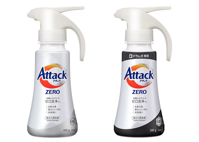 アタックシリーズのなかでもとくに反応が大きかったのが、「アタックZERO(ゼロ)」。「ワンハンドプッシュで使える手軽さ」「計量する手間が減ってうれしい」という喜びの声を見ると、家事をする人たちにとって、見えない家事が実は面倒ということがよくわかります。抗菌+(プラス)※※2になった「アタックZERO」は、24時間部屋干し臭を防ぎ、落ちにくい汚れ0(ゼロ)、生乾き臭0(ゼロ)、洗剤残り0(ゼロ)のゼロづくし。ドラム式もあるので、一度は使ってみたくなる商品です。同シリーズでは、抗菌※も消臭も洗浄も1本でOKの「アタック 3X」液体タイプや「アタック」粉末タイプなど、洗浄技術をとことん追求したラインアップが揃っています。