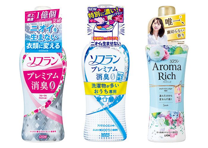 史上最速 1億個突破※したヒット商品「ソフラン プレミアム消臭」は、繊維の奥の奥までいきわたる極小の消臭成分の働きとキャップ1杯に配合された1億個の消臭成分の働きを特長とした商品。「もともと柔軟剤の香りが苦手なので、ほのかに香るこの商品が好きです」「消臭効果があり、洗い上がりが良い」というコメントにあるように、洗濯後の衣類の着心地や触り心地、香りに信頼をおいているママたちが目立ちました。「ソフランアロマリッチ」派のママたちは、ふわふわに仕上がってアロマの香りがたちこめるのに癒やされているようです。