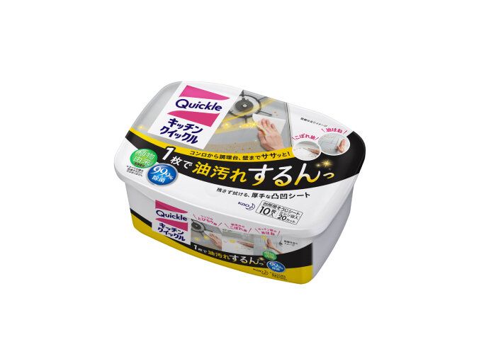 コンロのとびちり油、こぼれ油、油はねなど、放っておくとしつこくなる油汚れ。「キッチンクイックル」は、気づいたときにサッと拭ける手軽さと、植物由来の洗浄成分配合の凸凹シートがしっかり汚れをキャッチ&99%除菌※1・ウイルス除去※2の特長で、多くの票を獲得しました。油汚れだけでなく、冷蔵庫の内側や食器棚、電子レンジ、壁など意外と忘れがちな場所にも有効です。また、置き場所に困らないコンパクトさも人気の理由のようです。