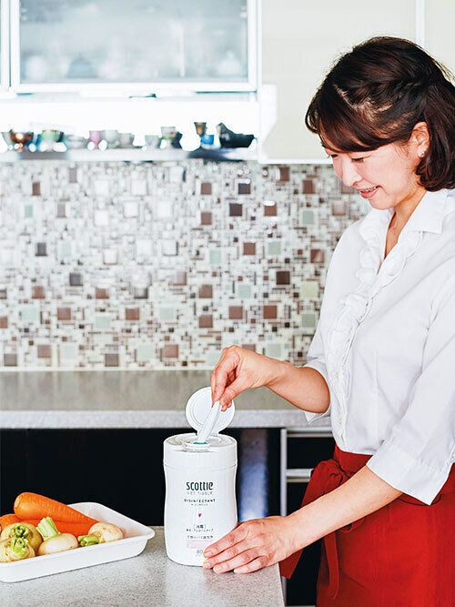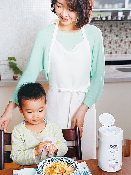 日常生活でも同じ。「息子にも、外から帰ったときや食事の前には手をキレイにするように習慣づけています。最近では自分からウェットティッシュに手をのばすようになりました」(関岡さん)。風邪やインフルエンザが流行する冬場は特に注意しているとか。まめな消毒が、日々のキレイと家族の健康を守っています。