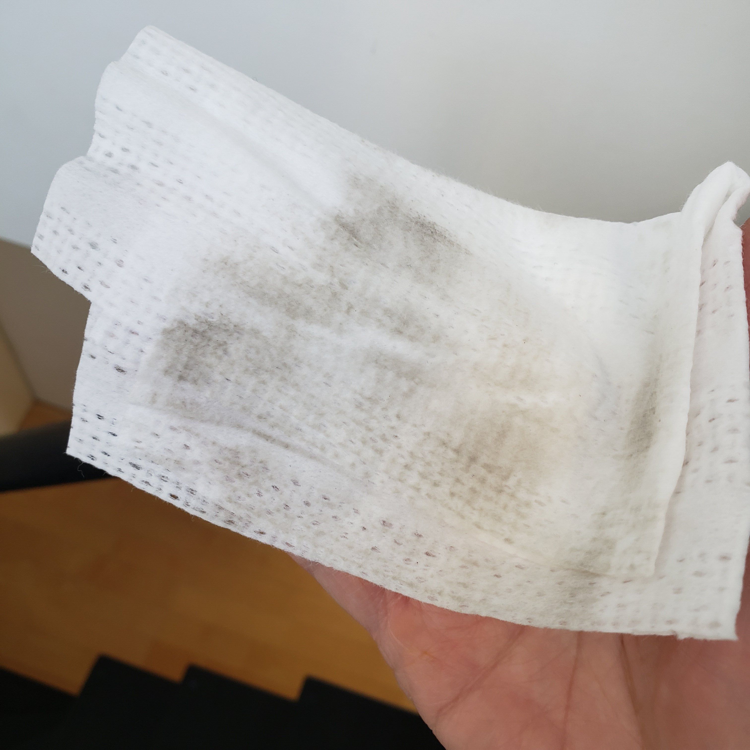 実際に拭いたあとのシートです。こちら、手すりを拭いただけでこんなにも汚れが取れたんです!すごいですよね?