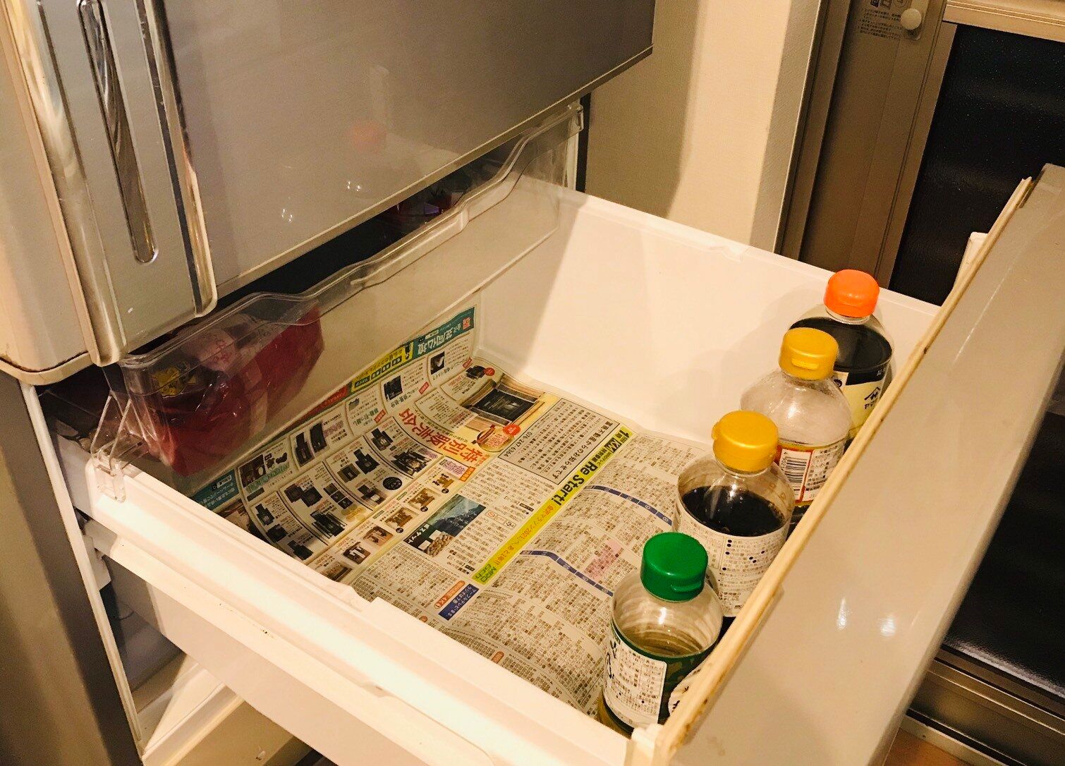 汚れるとわかっている場所は、予防掃除がおすすめ!我が家では、冷蔵庫の天板上や冷蔵庫内で汚れる場所は新聞紙やキッチンペーパーを敷いています。ホコリが溜まったり、汚れが目立ってきたら新聞紙やキッチンペーパーを取り換えるだけ。ちょっとの工夫で掃除がラクになりますよ。