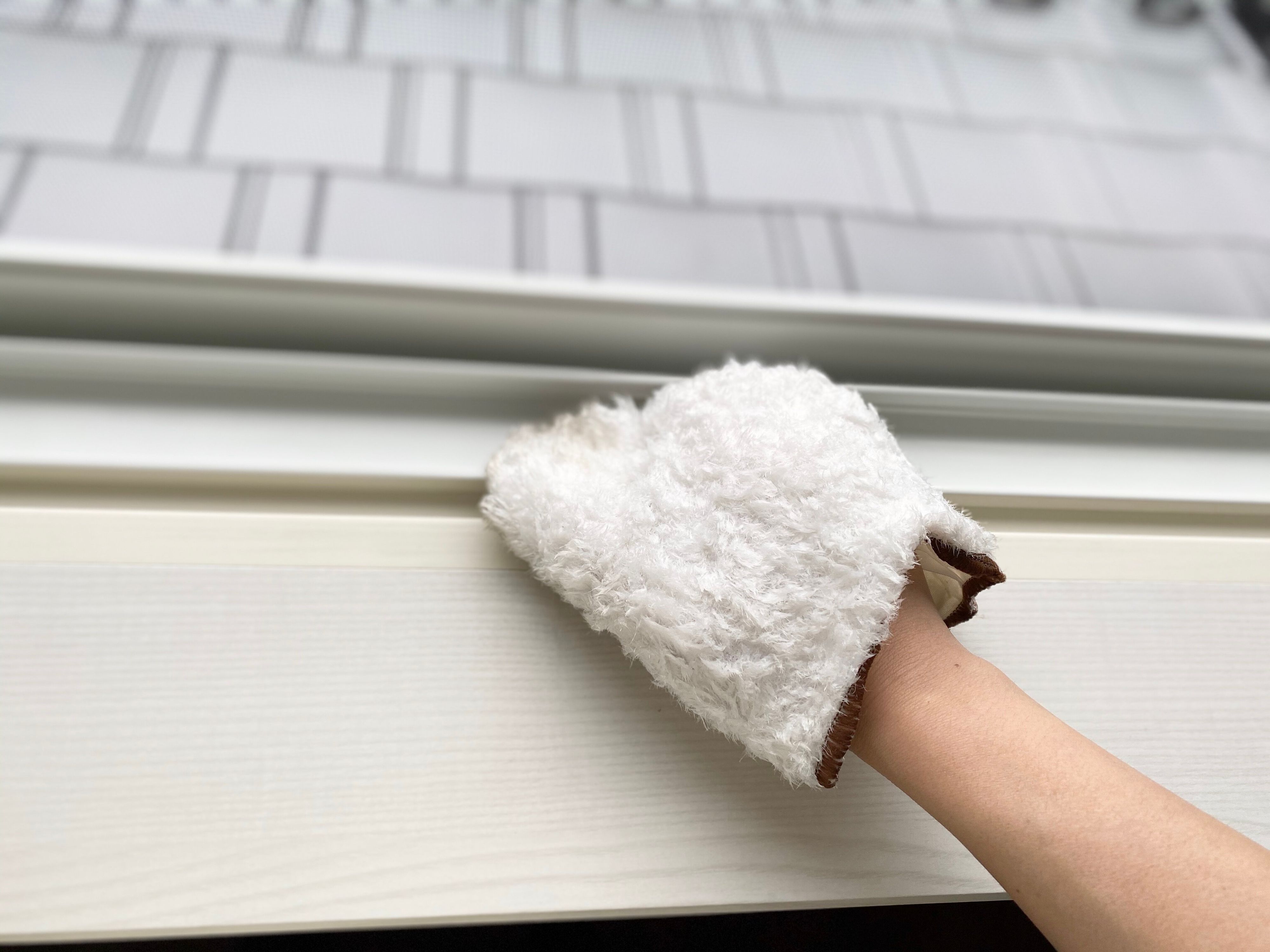 カビが生えがちな窓枠やサンもミトンで汚れ落とし