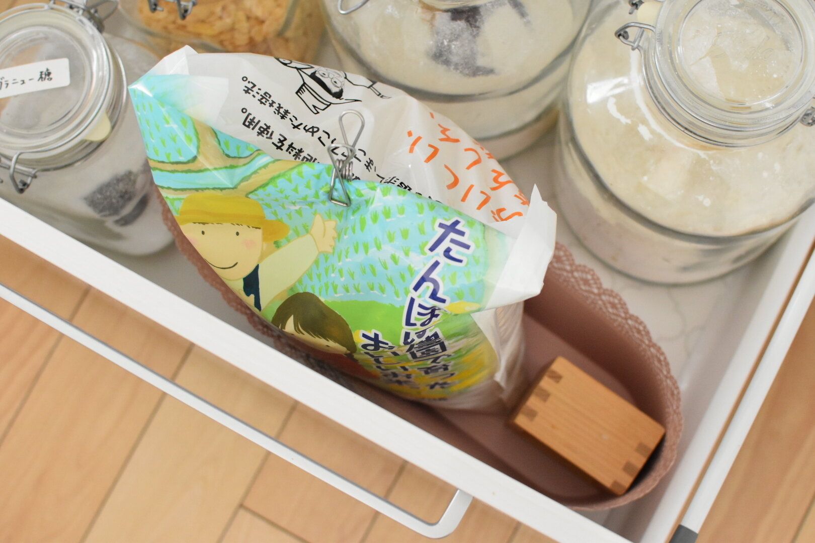 ガラスの細かい破片がお米に混ざってしまうという大惨事をきっかけに米の収納を見直しました。