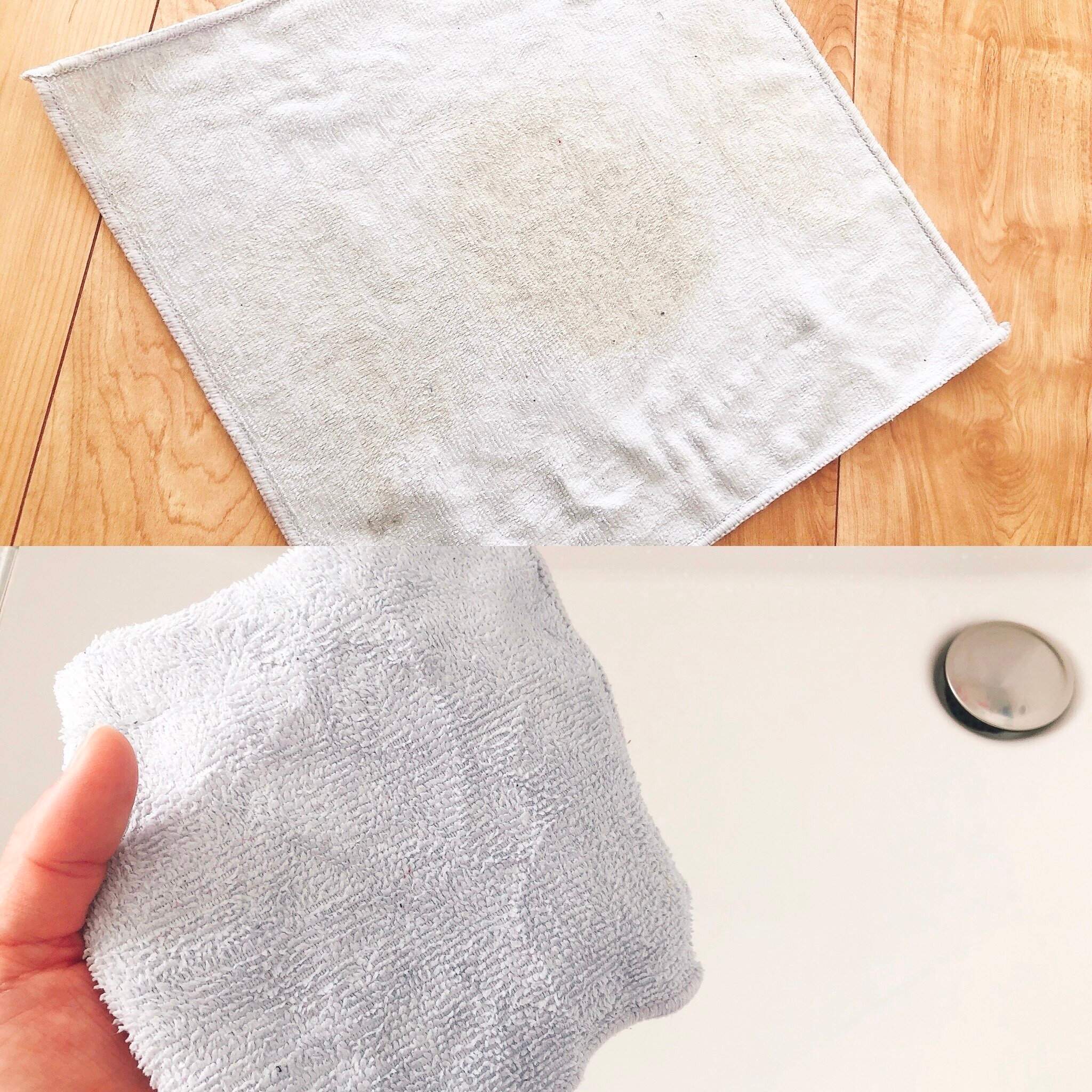 拭き取った汚れも、水洗いだけでここまできれいに。
