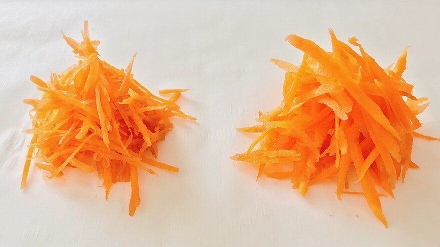 細目は、そのままサラダのトッピングにしたりマリネにしたり。粗目は、炒めものなどにちょうど良い太さです。