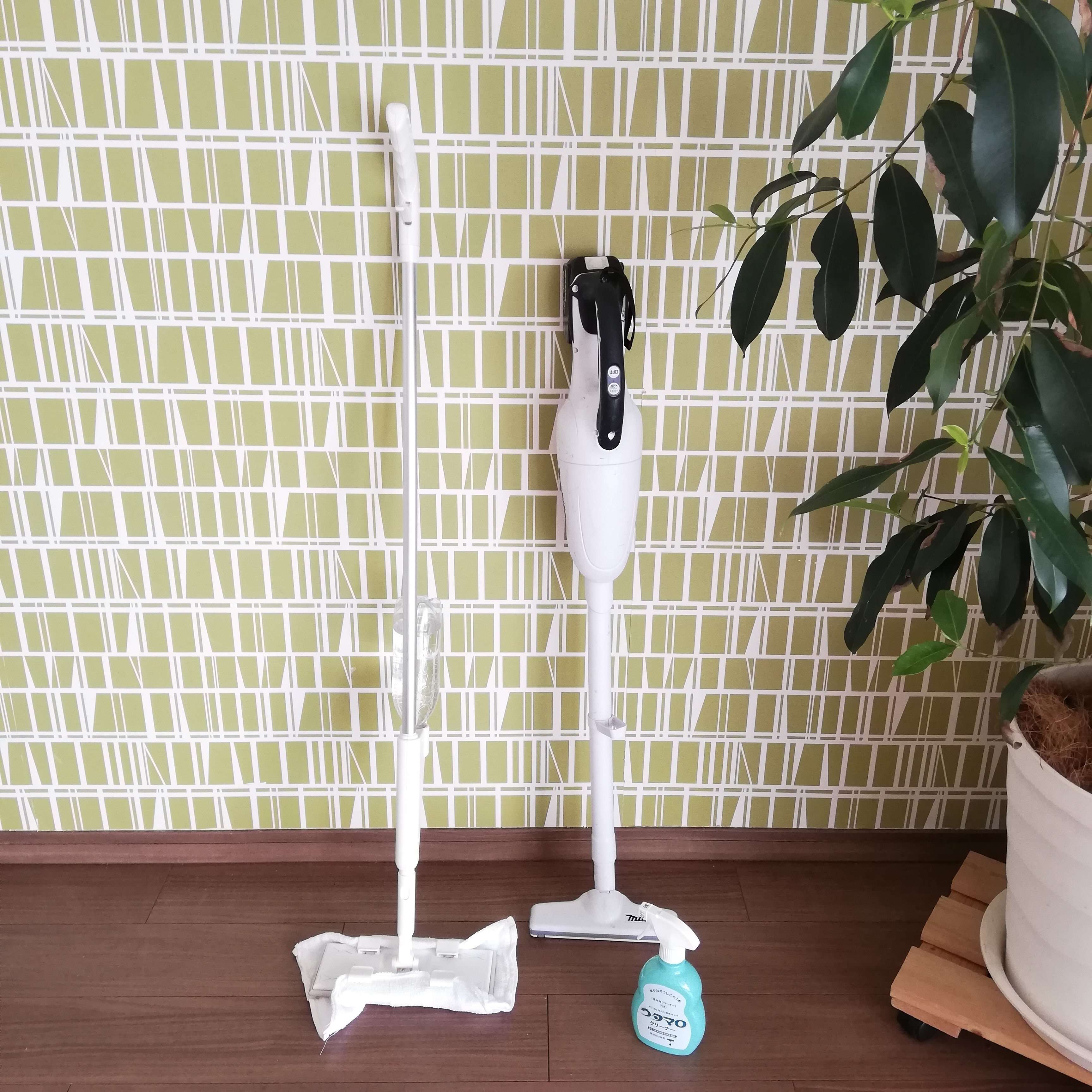 今の掃除用具はコードレス掃除機と床拭きワイパーの2つのみ。
