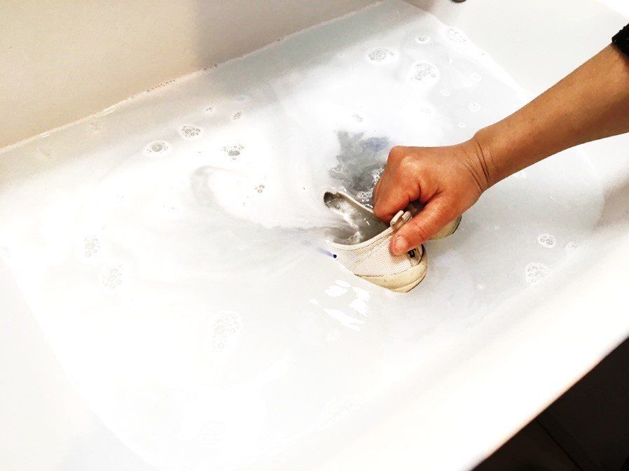 汚れが目立ちやすい上履きなどの白い靴の場合は、洗剤を溶かした水にしばらくつけておくことで繊維の奥まで洗剤が浸透して、汚れが落ちやすくなります。