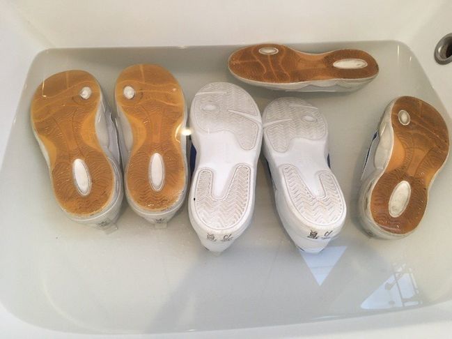 黒く汚れてしまった子供の上履きや運動靴をつけおき洗いして、汚れを落としてしまいましょう。
