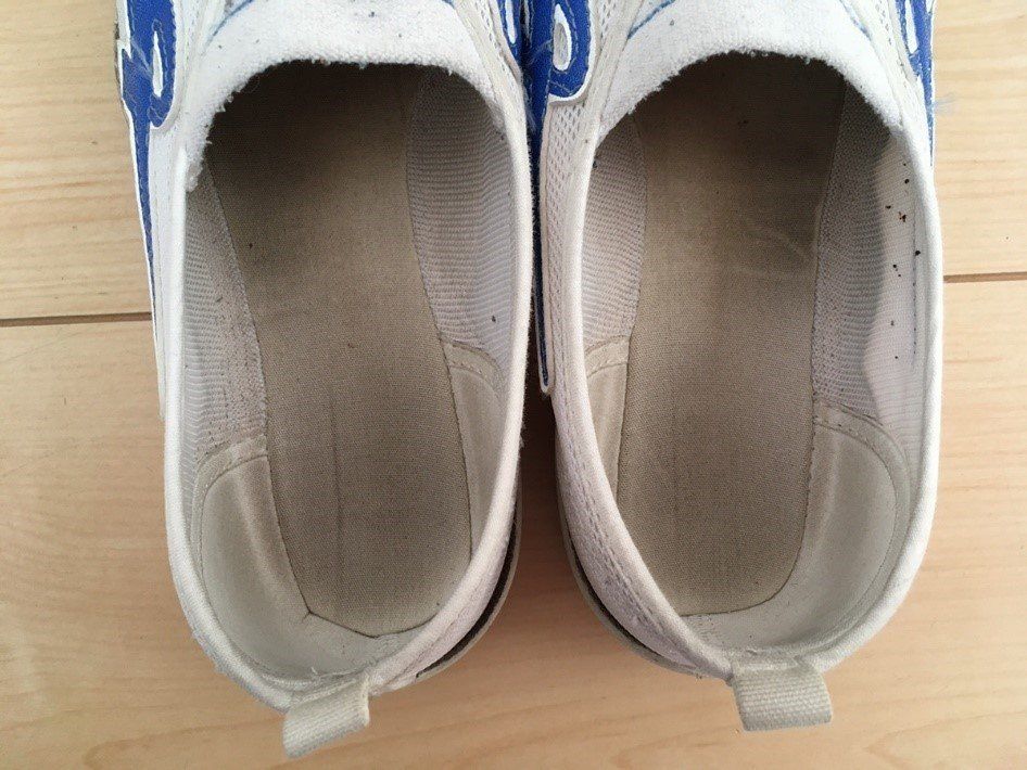 いきなりお見苦しい画像ですみません。いやいや、これも元気に遊んだ証拠なんです。こんな汚れた上履き、本当にきれいになるのかしら…と私も少々不安。でも論より証拠、「プロ向け」の実力に期待です!この汚なさ、よく覚えておいてくださいね。