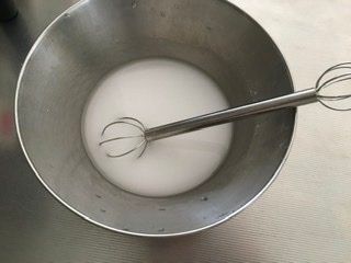 水200mlに片栗粉大さじ4を混ぜます。しっかり溶かしてくださいね。