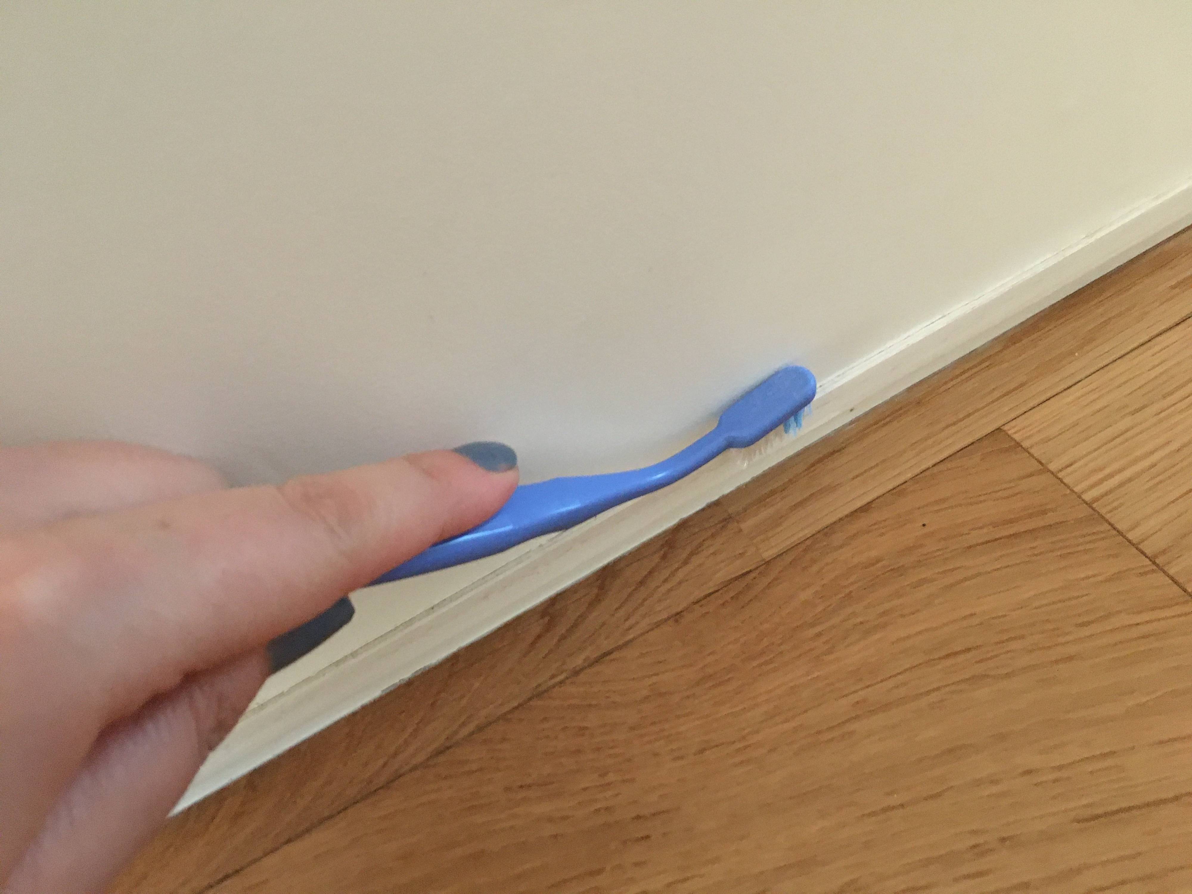 ホコリがたまりやすい巾木の上や窓のレール部分は、乾いた古歯ブラシで掃除するのがおすすめ。濡らしてしまうとホコリがよれて取りにくくなるのでご注意を。
