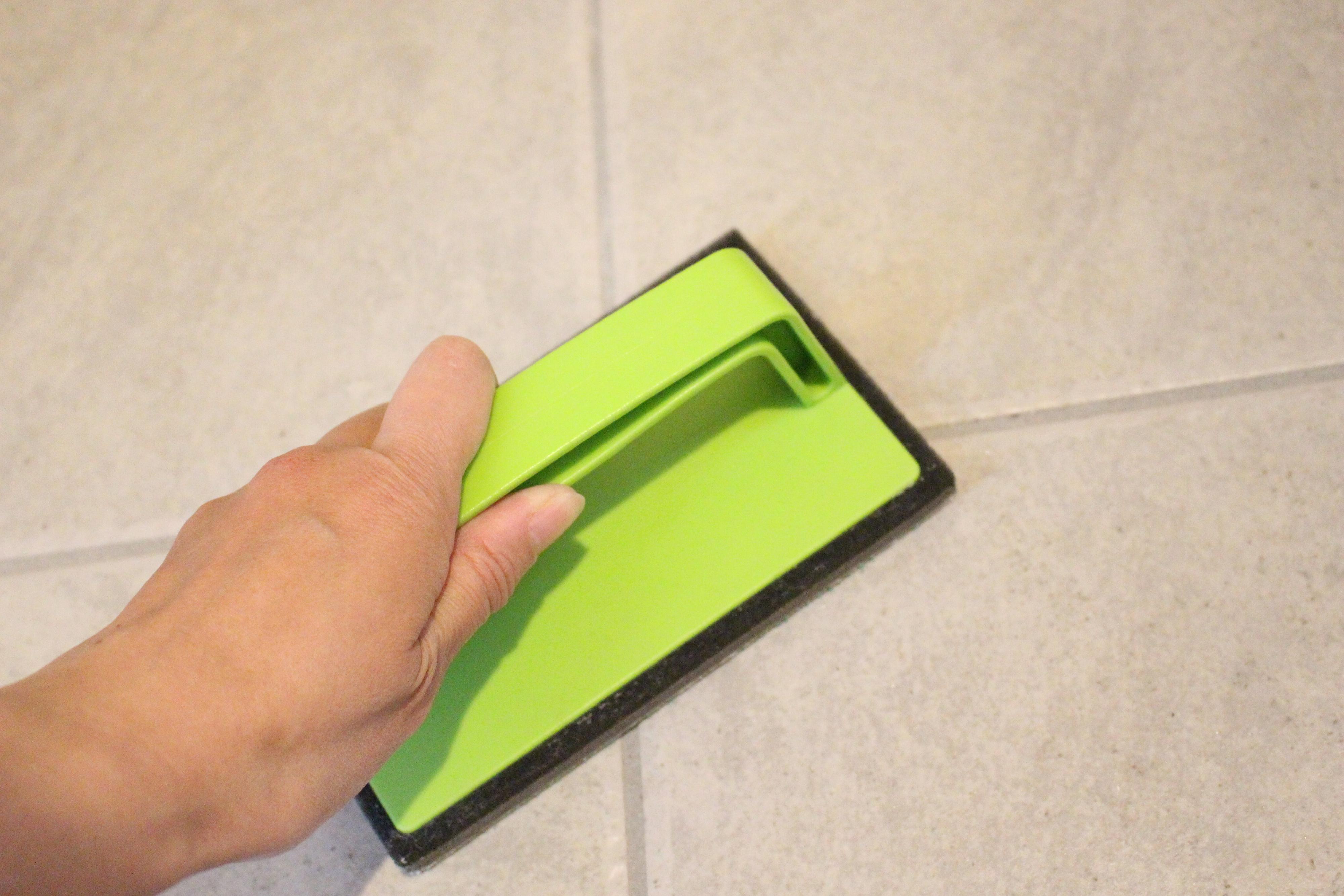 水滴の跡や汚れが気になる場所は水で濡らしたこのタイル用のスポンジで軽く擦ればすぐに綺麗になります。
