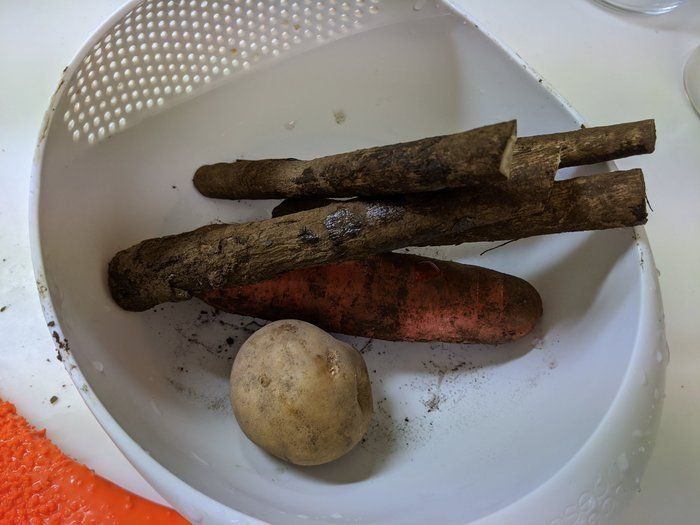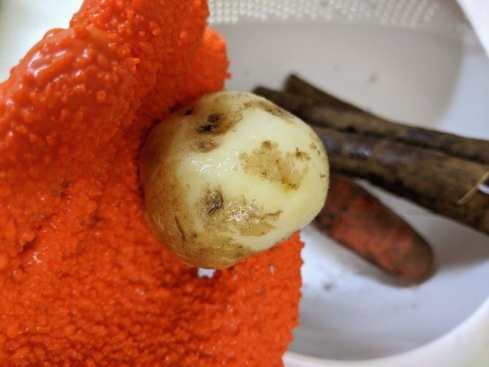 さぁ!皮むき手袋を装着してさっそくアレコレ洗って撫でて剥いてみますよ〜!