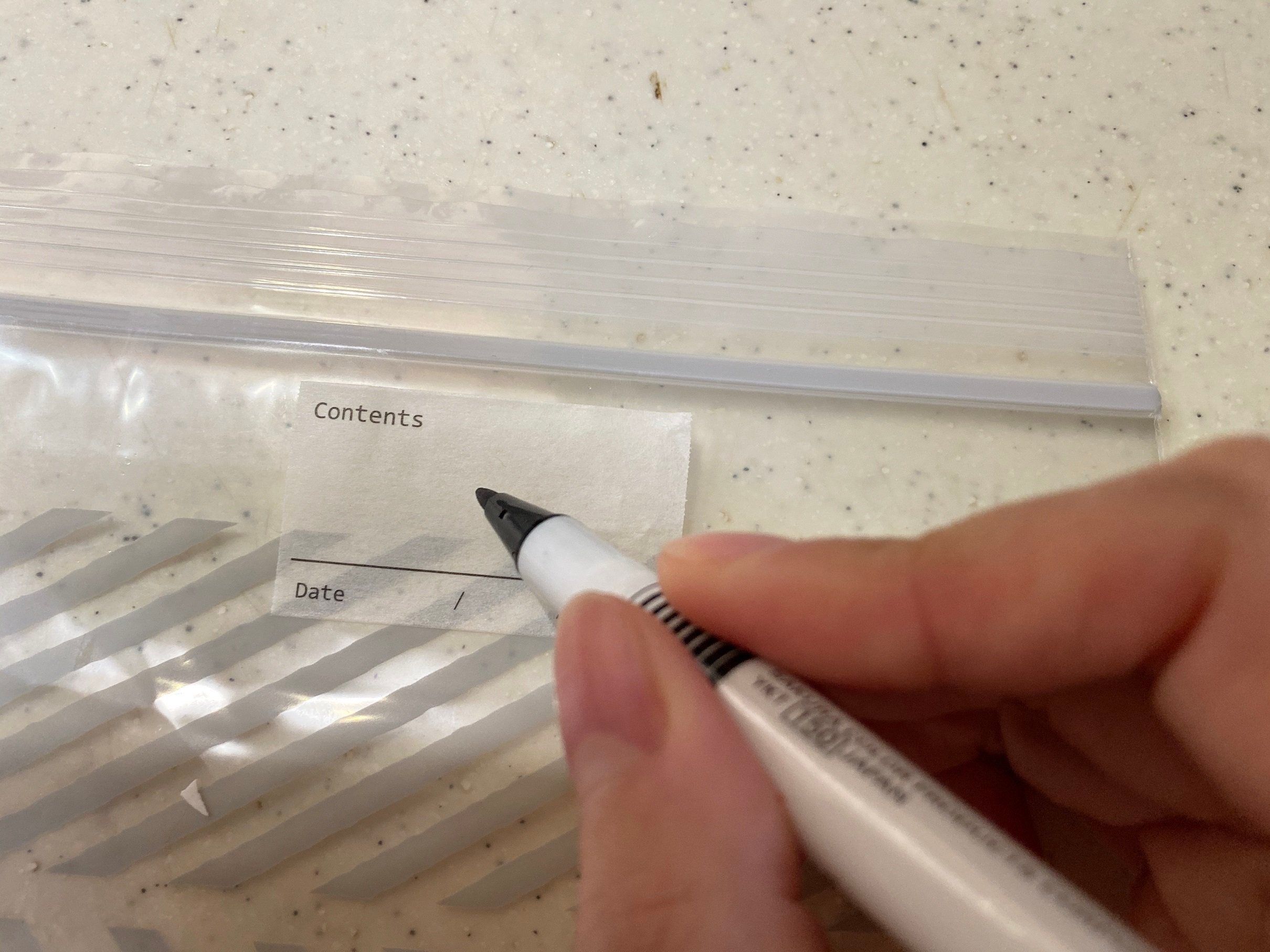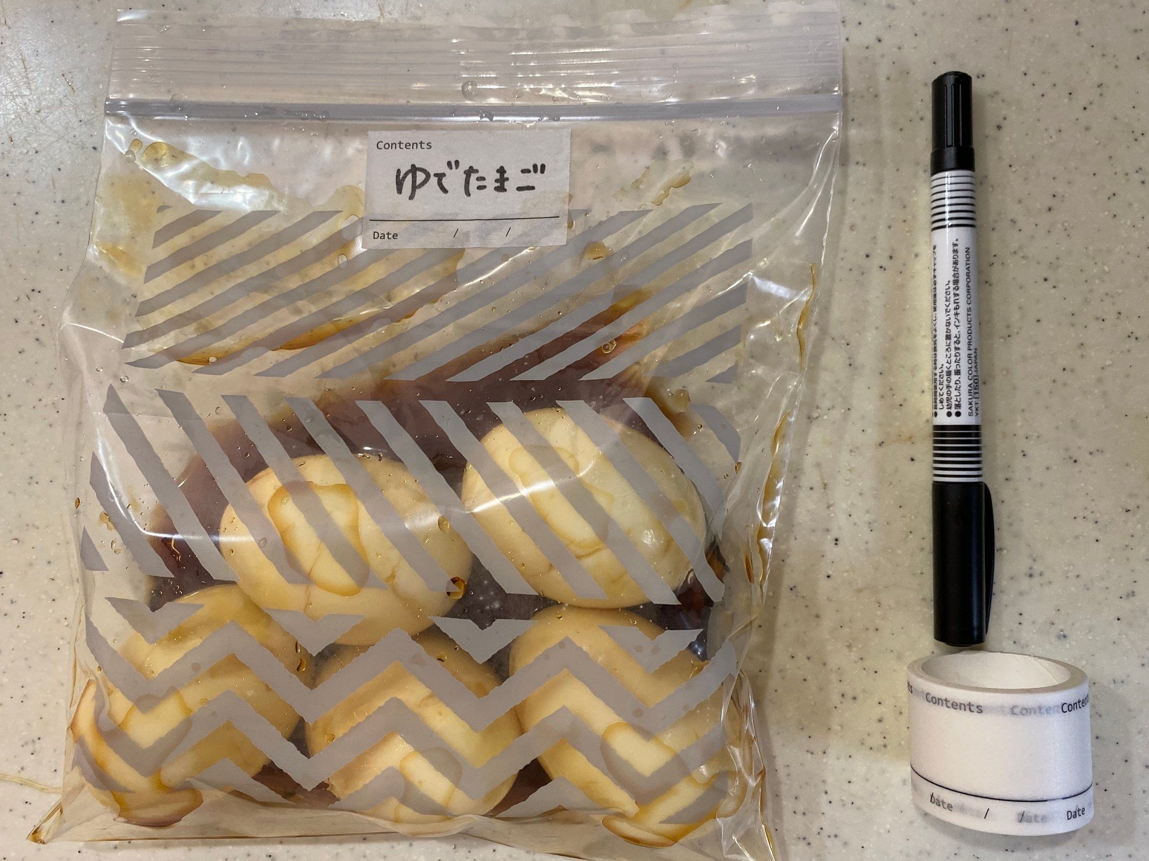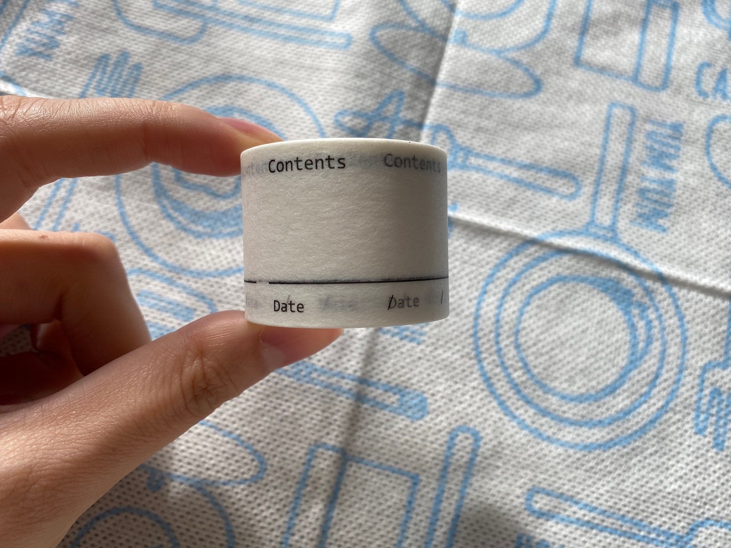 使い方はいろいろ!たとえば、先に紹介した「冷凍保存用 フリーザーバッグ幾何学柄」と組み合わせてみるのはいかがでしょう。キッチンでつくり置きした食材をフリーザーバッグに入れたら、袋にテープをペタ。献立名を書いておいたり、調理日を記入しておくと、便利ですね。