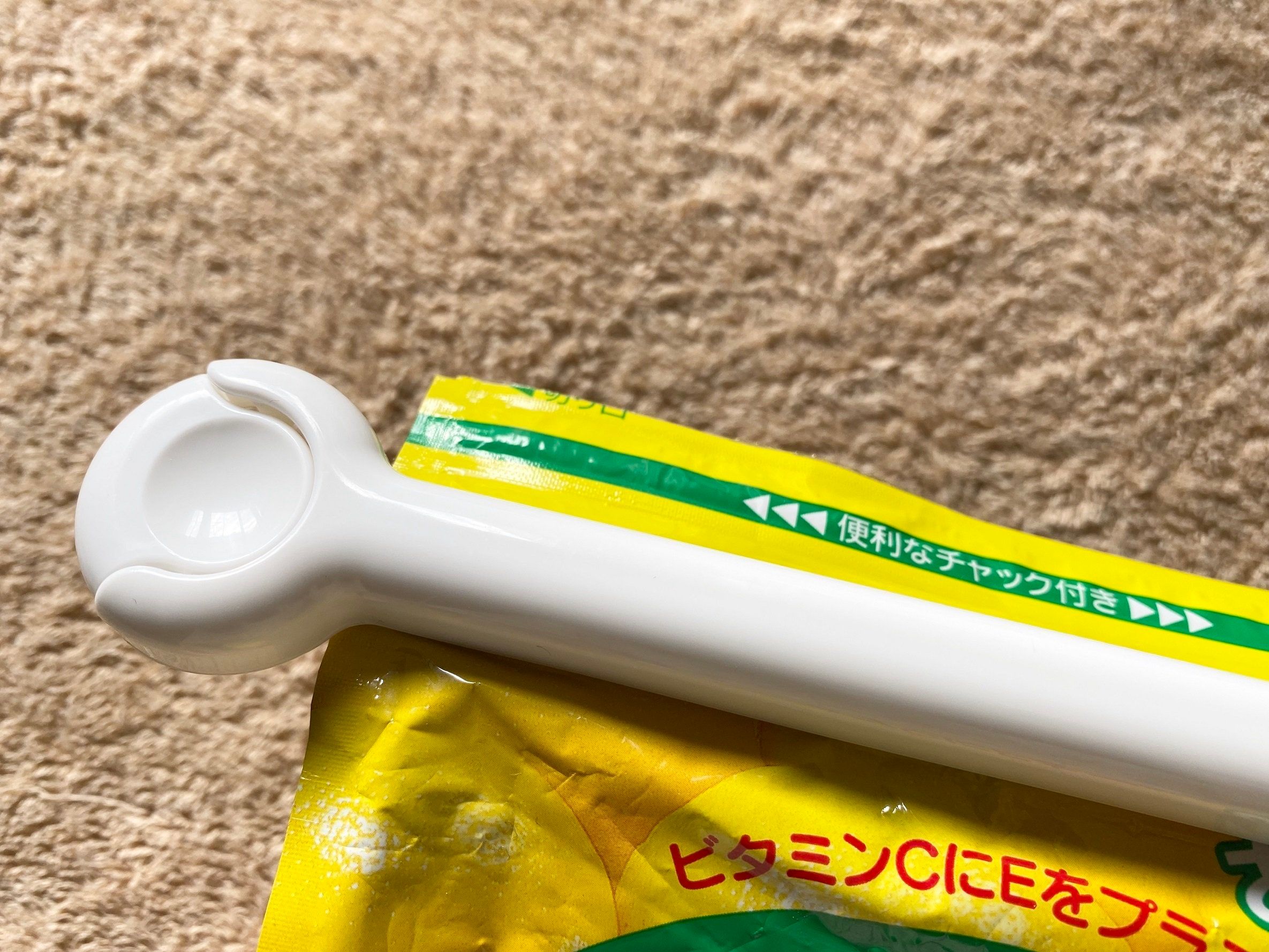 こちらの「パック クリップ」は長さが約15cm。先ほどのシリコンバンドと同じく、大き目の袋などをとめるときに役立ちます。かちっとはさむだけなので、こちらも慌ただしい調理中の袋どめに使えますね。