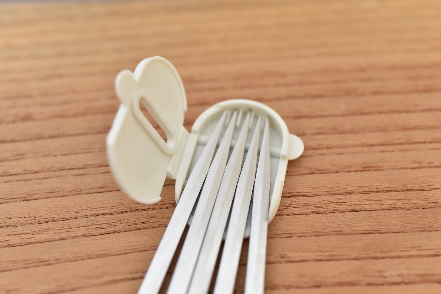 この商品のもう1つのポイントは、収納に便利なケースがついていることです。串の先にはリングもついているので、ぶら下げての収納も可能ですが、引き出しにしまう際は、串のとがった部分で手を傷つけたりしないように、付属のケースに収納しましょう。