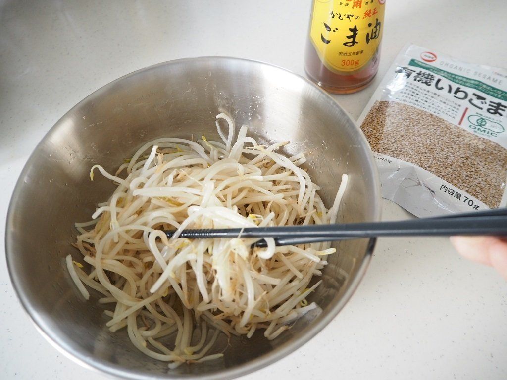 ボウルを購入して最初に試してみたのは、頻繁に作るナムル。いつものようにごま油をたっぷりと入れて、作ってみました。