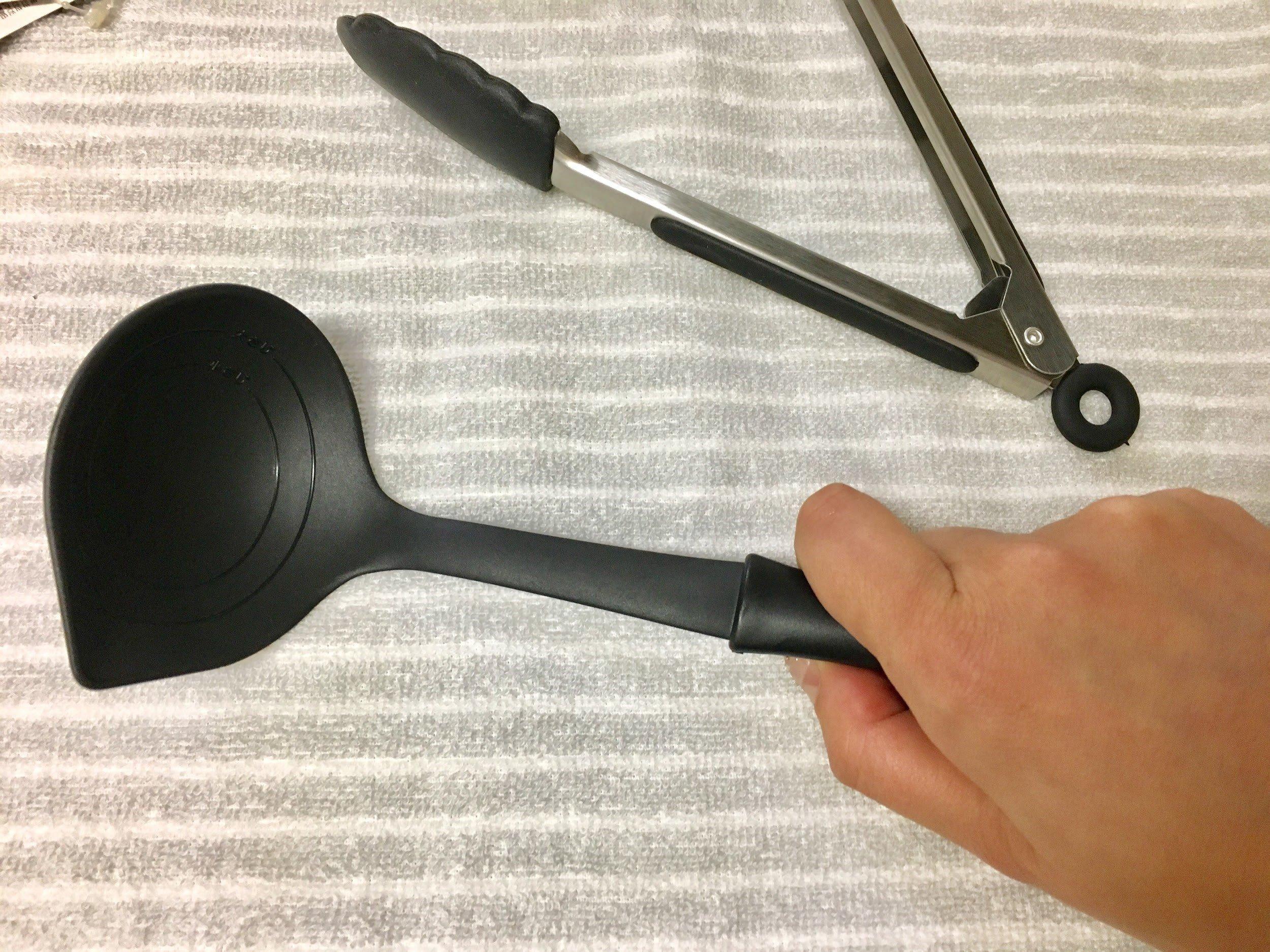 炒め物やホットケーキ、卵焼きなどのときに使えるのがバターピーター(199円・税込)。耐熱性にも優れていて210度までOKです。ナイロン製のキッチンツールはフライパンにも傷がつきにくいので、子どもでも安心して任せられます。
