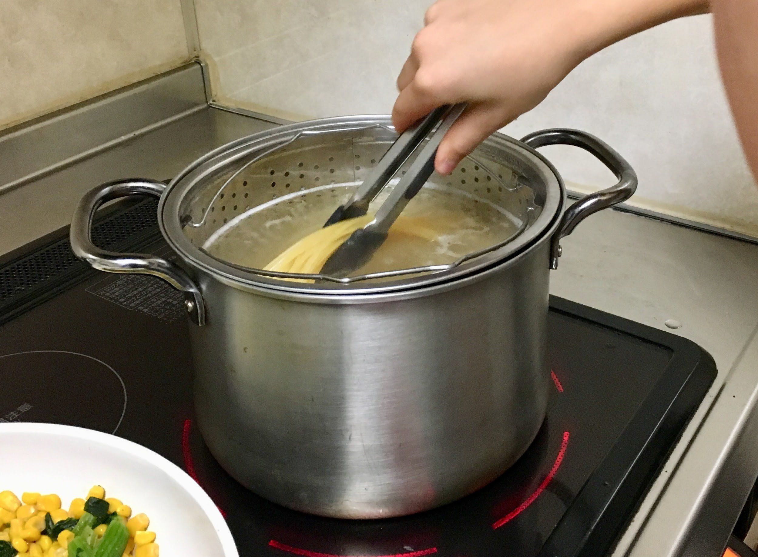 わが家ではお肉を焼く、パスタを茹でるときに使っています。このまま食卓で使っても大きすぎないサイズ感がよいですよね。