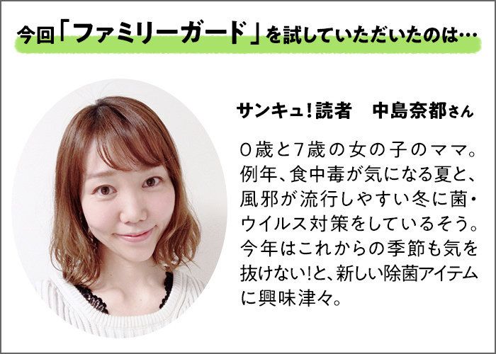 家の中のさまざまな場所・モノに使えて、短時間で広範囲をカバーできる「ファミリーガード」は、子育てや家事で忙しいサンキュ!世代にもおすすめですね。