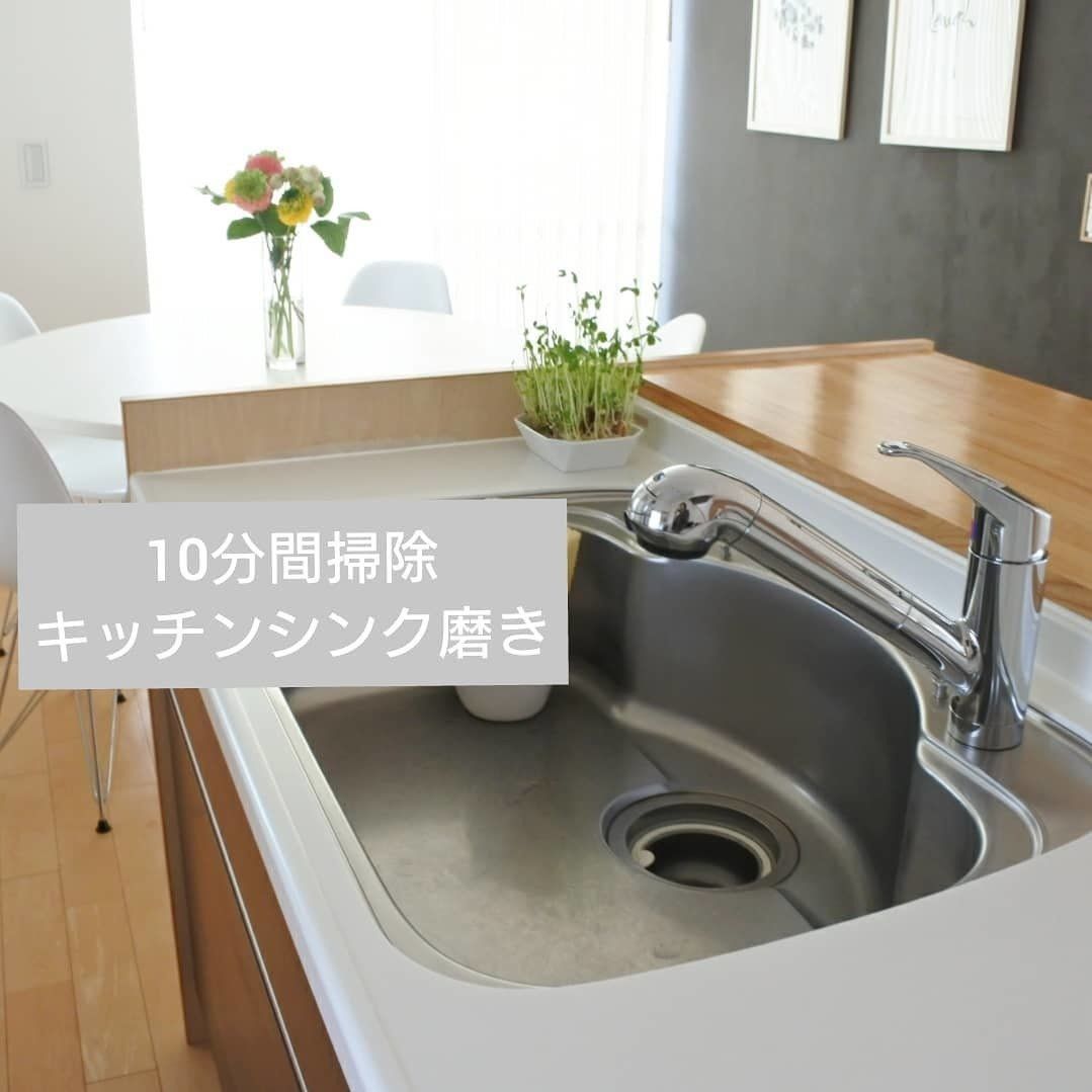 皿洗いをしたあと、いつもはサッと洗うだけのシンクも10分間使って念入りに。水垢処理や排水溝の隅々までキレイにすることで、ピカピカのシンクに!気持ちも晴れそうです。