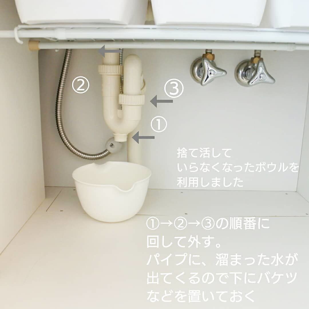 意外と見落としがちな洗面所の排水管掃除。パイプを外して、溜まっている髪の毛や汚れを不要な歯ブラシでこすり取ります。これでスッキリとした洗面所に変身です!