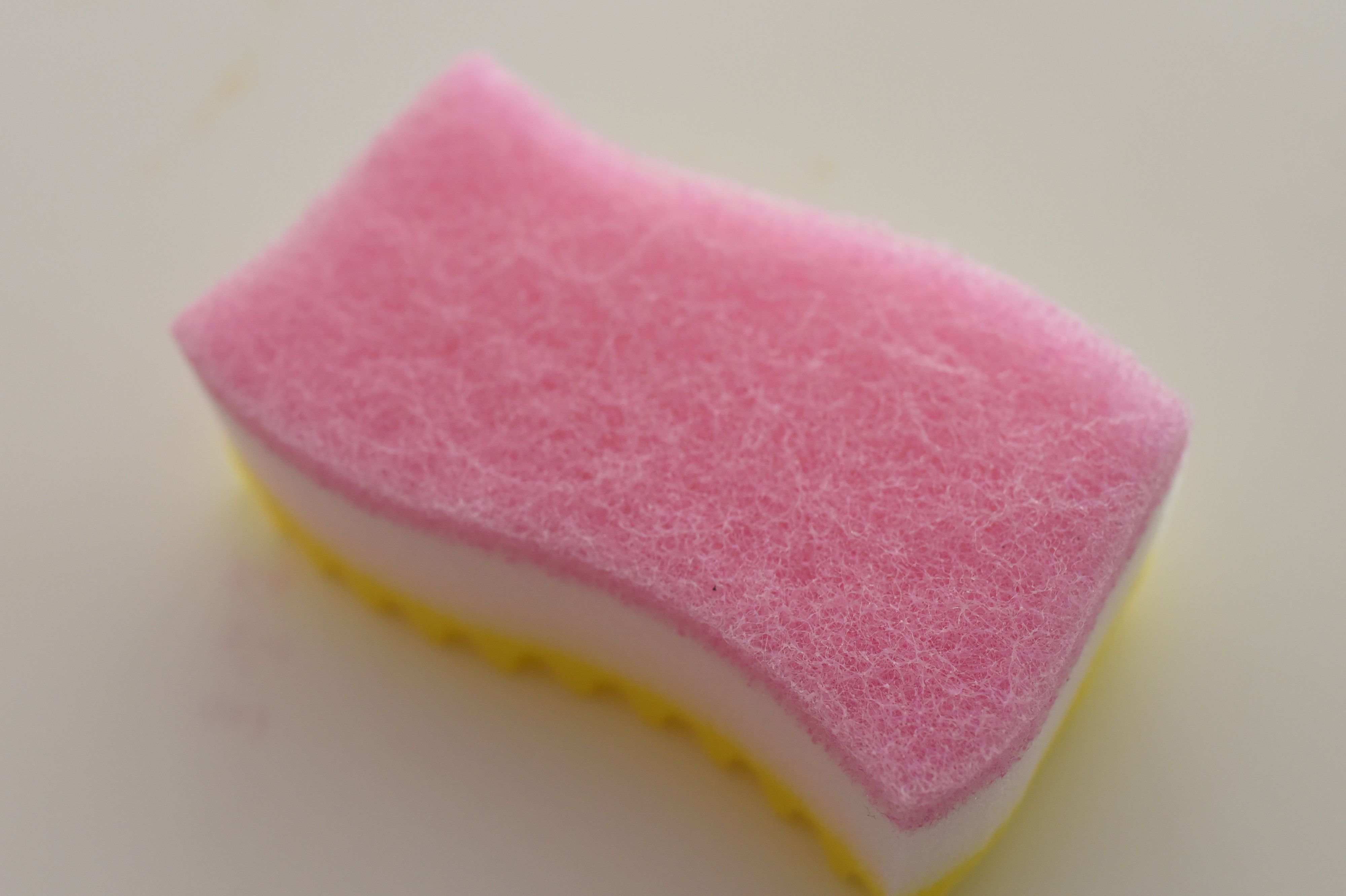 ピンクの面は、硬くざらつきのある素材です。鉄のフライパンや固まって取れにくくなったチーズなどを洗う時に活用しています。