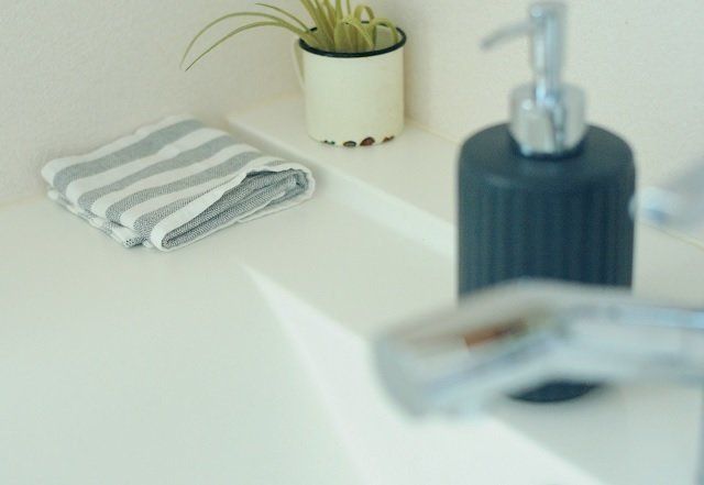 水滴をはじめ石けんの飛び散りなど、汚れやすい洗面所には、タオルやふきんを置いておき、「使ったらひと拭き」を家族のルールにすれば、汚れが最小限になります。