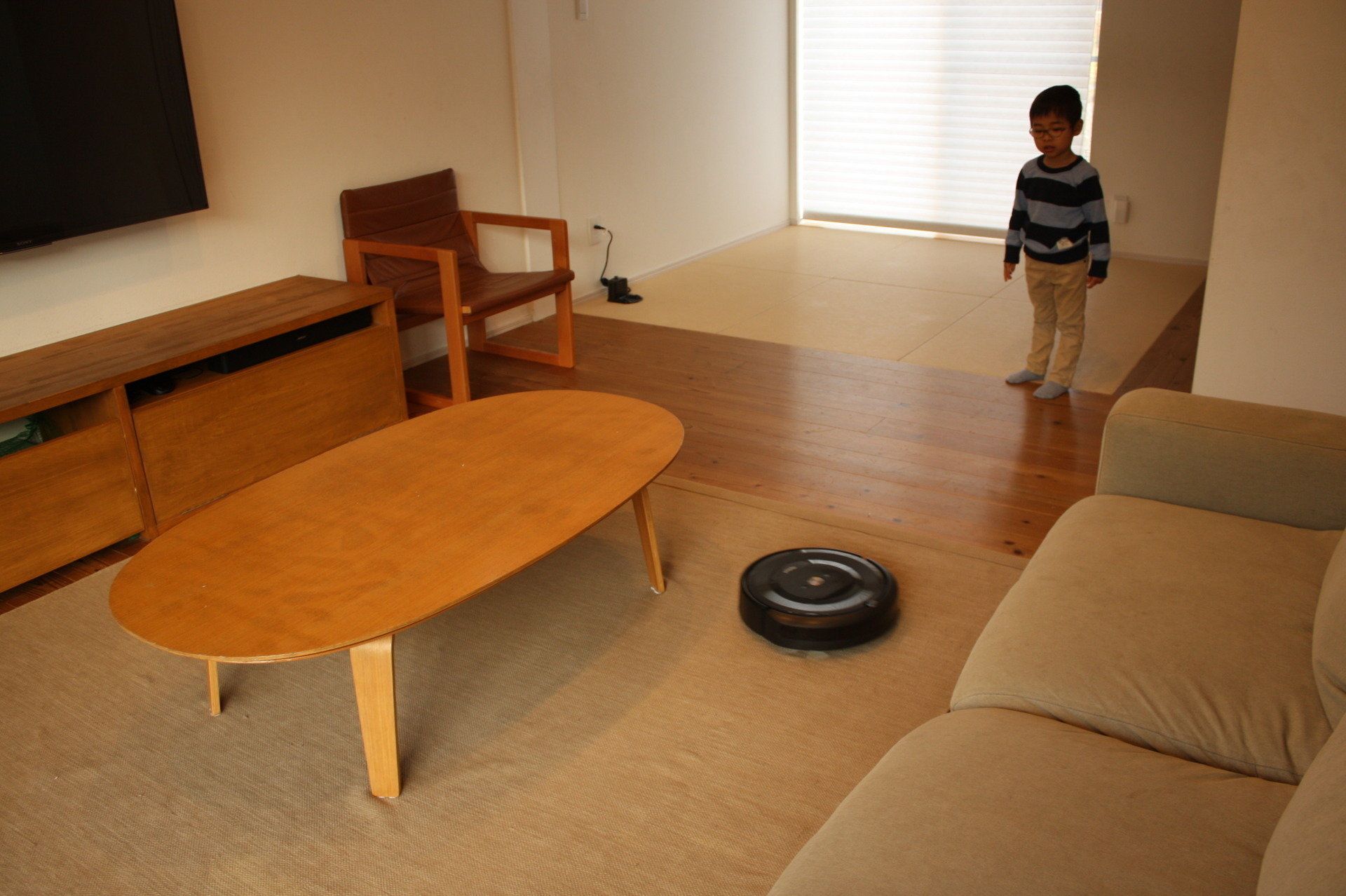 朝、掃除機かけをしていたというMIINAさん。MIINAさん宅にルンバがやってきたおかげで、掃除機がけという家事がひとつ減りました。「朝時間に余裕が生まれ、自然と心に余裕が生まれ、朝からにこやかに過ごせた日はなんだか幸せ」。休日もルンバに掃除をまかせて出かけることができました。「手をかけて家事をすることも大切ですが、賢い家電の力を借りて、生活の中にゆとりを生むこともアイデアのひとつかなと思います」。ルンバのスイッチを入れるのは、ルンバが気になってしかたがない弟くんの仕事になりそう。
