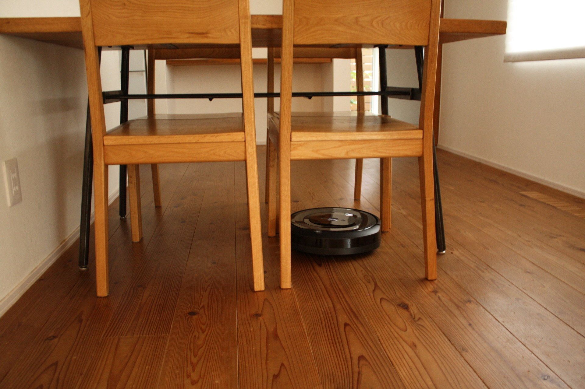 ルンバのセンサーが部屋の状況を把握。「ダイニングテーブルの下にもするすると入って行って、子どもたちの食べこぼしをきれいにきれいにお掃除してくれる、お見事!」とMIINAさん。