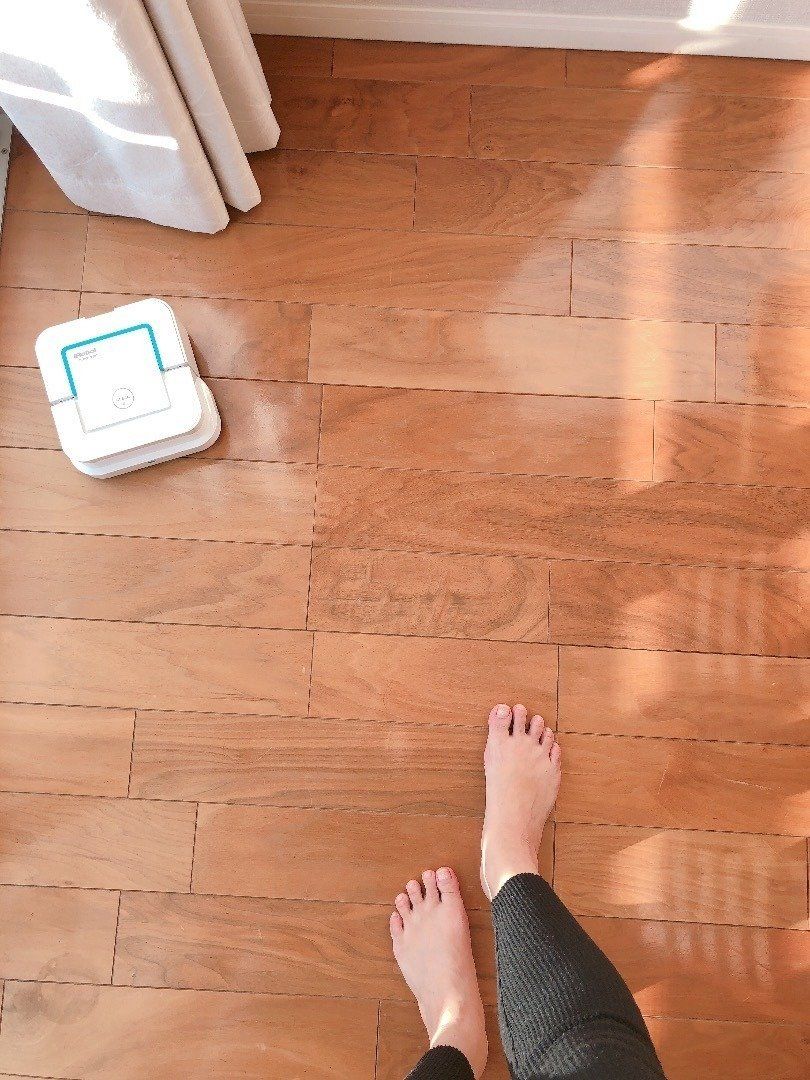 ヨガインストラクターの岡田なつこさんは、「ヨガのあと、マットを丸めてしまうときにほこりがついているのが気になっていたし、何よりベビーヨガ中は目線が低い位置にくるので掃除できていないとほこりが気になって」、少し神経質になりかけながら、掃除機のあとの水拭きも毎日頑張っていたとか(涙)。そんな悩みをいとも簡単に解決してくれたのがブラーバ。