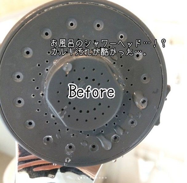 続いてご紹介するのはシャワーヘッドのお掃除方法です。キレイに見えるシャワーヘッドも、よく見るとカルキ汚れや隙間汚れがこびりついていることも!