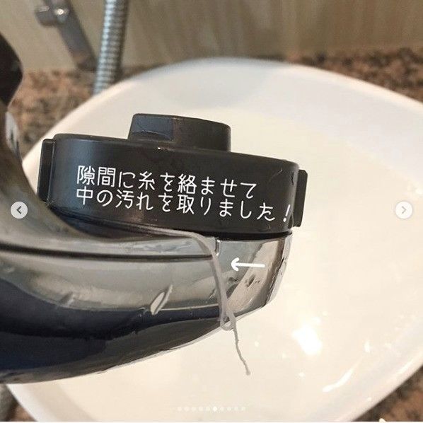 浸け置きが終わっても、まだ汚れが落ちていないことの多い部分が隙間や溝部分です。隙間や溝部分には糸を絡ませて磨くと、糸がブラシ代わりになってくれるので便利!