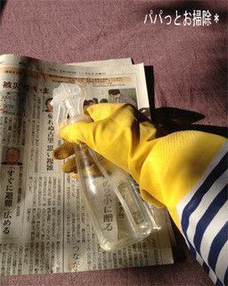 新聞紙を活用して窓ガラスを掃除しているママリッキーさん。新聞紙を手でクシャクシャにしてやわらかくしたら、スプレーで水をガラスに吹き付けて拭いていきます。新聞紙が汚くなったら捨てて、また新たな新聞紙で拭く作業を繰り返すだけで、窓ガラスもサッシもピカピカになりました。雑巾を洗う手間が省け、水代の節約にもなりますね♪