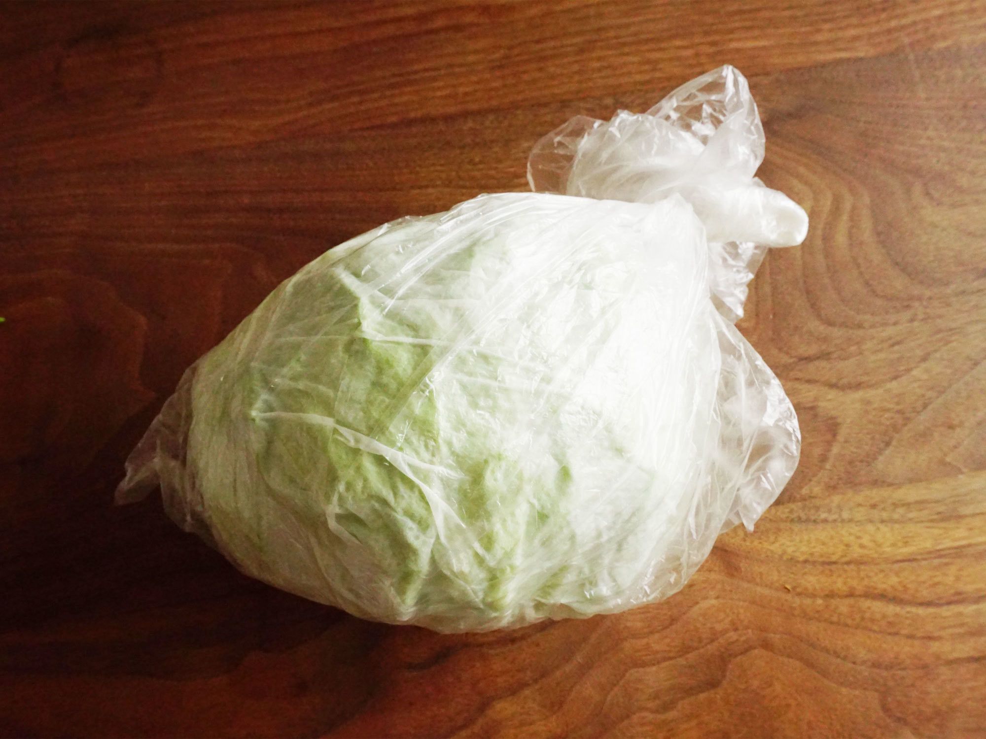 レタスやキャベツは濡らした新聞紙で包み、ポリ袋に入れて野菜室で保存します。