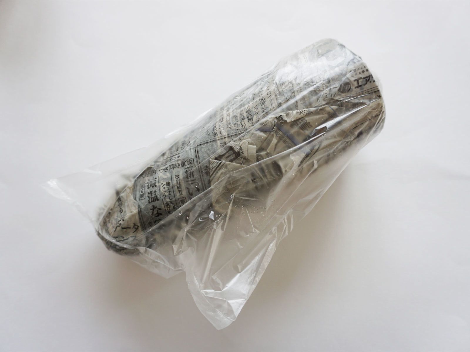 冷蔵庫保存は、新聞紙とポリ袋を使う