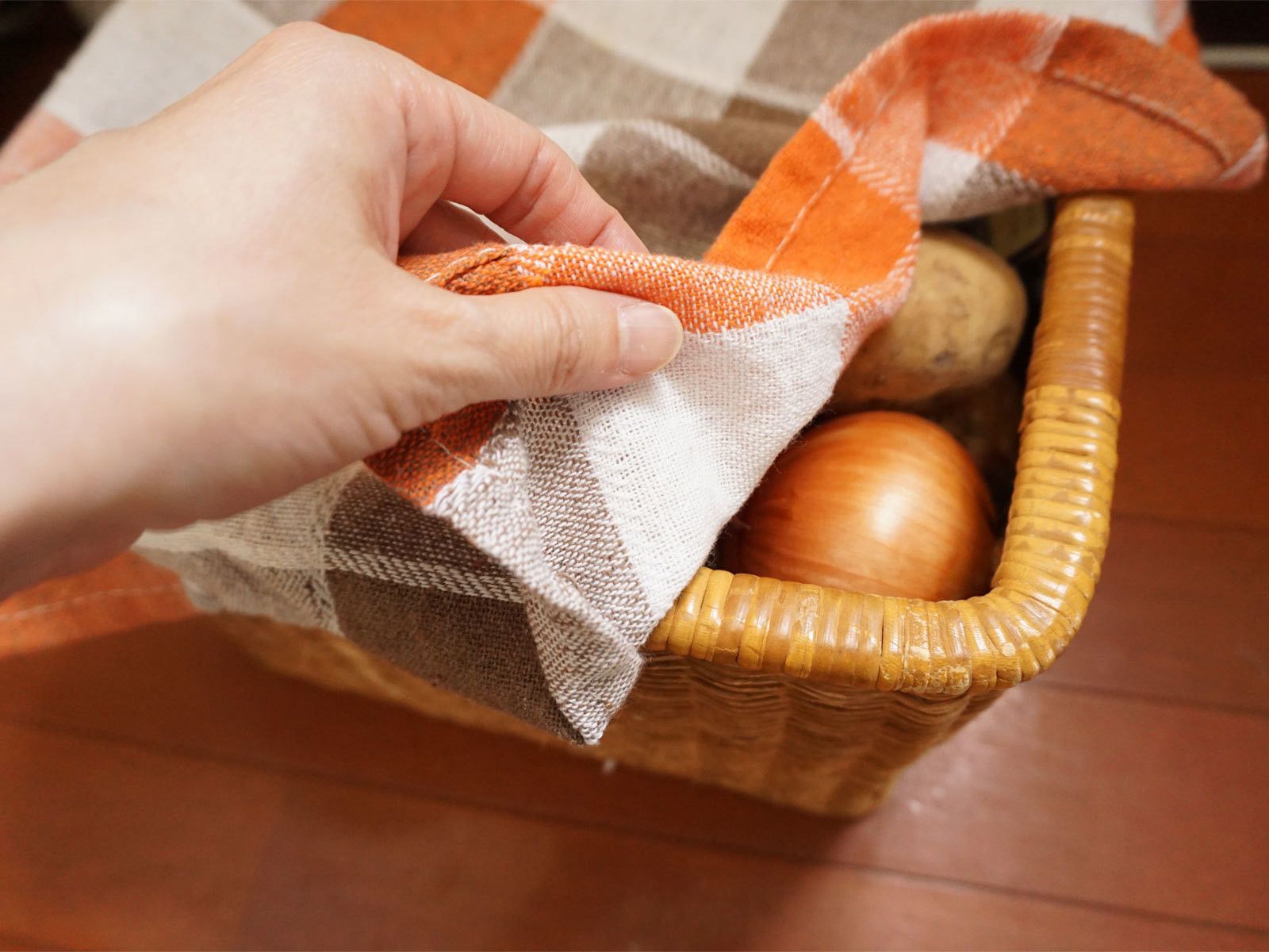 じゃがいもや玉ねぎは風通しがよく、涼しく、日が当たらない場所で保存します。冷蔵庫には入れません。じゃがいもは芽が出てしまうので、必ず日の当たらない場所で。