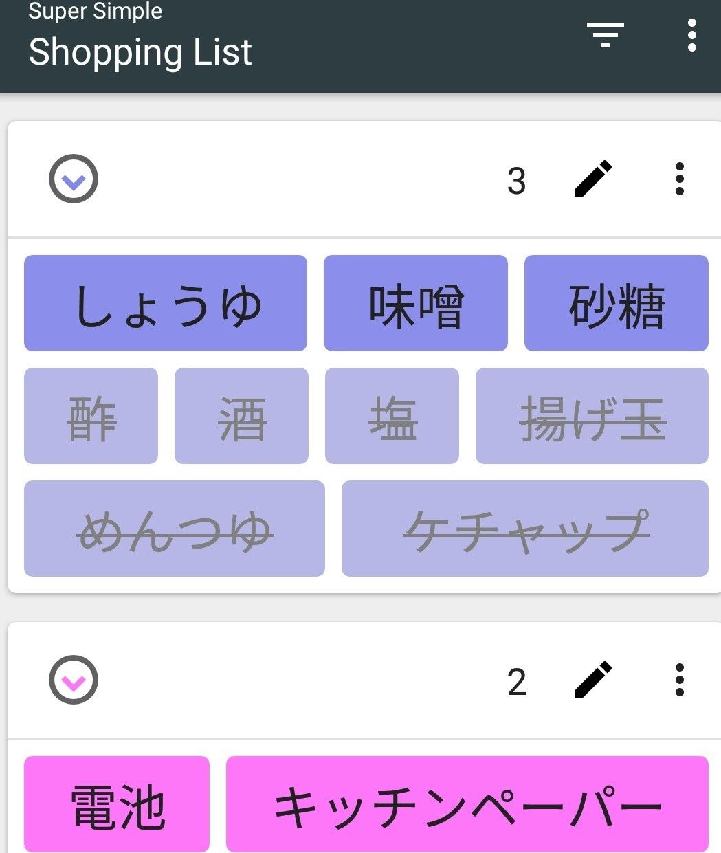 おすすめアプリ①「Shopping List」 品目の色分けで買いすぎ予防!